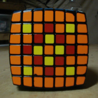 Until my current deployment to Afghanistan, I'd only ever tried to get one side of the cube, as quickly as I could, and only once did I get even two sides at the same time. I had a breakthrough to the next step while I was out here, and there was someone willing to show me the remaining steps to solve the 3x3x3 cube. Once I got the hang of that one, I moved up to a 5x5x5, and learned a couple of new tricks for the larger cubes. I taught myself the 7x7x7, and then started making designs to give a bit of a challenge. Here, for those who wish to take the time to view, are the results. Enjoy! :)